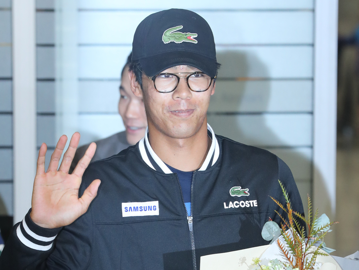 정현은 28일 호주발 대한항공 KE122편으로 인천공항 제2터미널에 도착해 수많은 팬과 취재진 앞에 모습을 드러냈다.