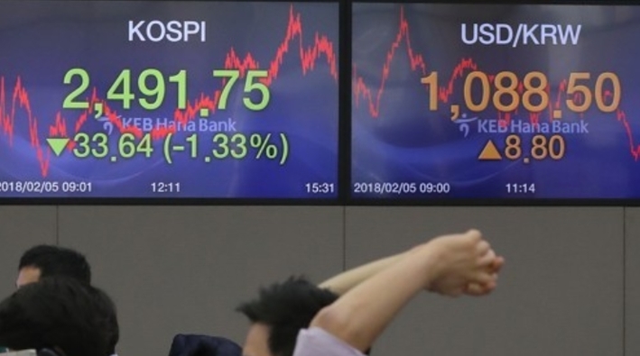 한국거래소에 따르면 코스피 지수는 전 거래일 대비 33.64p(1.33) 떨어진 2491.75로 마감했다. 이틀째 하락세를 보이고 있는 것이다.