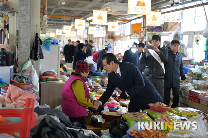 이상복 강화군수는 6일 설 명절을 앞두고 강화풍물시장을 방문해 상인들을 격려하고 주민들의 전통시장 이용을 독려했다(사진).