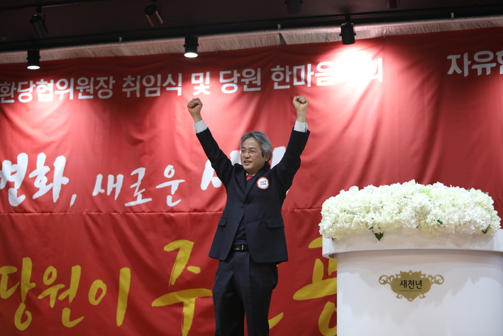자유한국당 고양시병 이동환 당협위원장의 취임식 및 당원한마음대회가 8일 고양시 일산동구 새천년웨딩컨벤션에서 열렸다(사진).