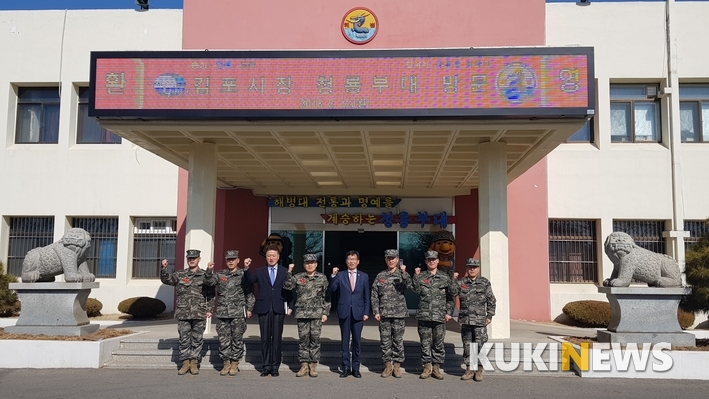 유영록 김포시장은 12일 해병대 제2사단을 방문해 위문금을 전달하고 국군 장병과 근무자들을 격려했다(사진).