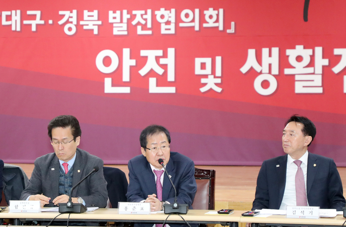 홍 대표는 마지막으로 “대구·경북은 자유한국당 본산이다. 여기에(대구·경북) 불이 붙어야지 그 불이 충청으로 경기도로 서울로 간다. 여러분들이 활동을 좀 더 열심히 해줄 것을 부탁드린다”고 말했다.