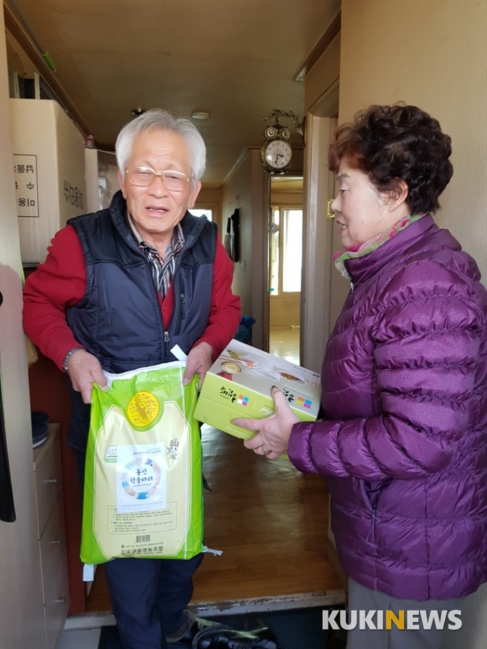 경기도 김포시 통진읍 지역사회보장협의체(공동위원장 고상형, 이진유)가 기탁된 명절 이웃돕기 물품(백미, 생필품 등)을 전달하는 봉사활동에 구슬땀을 흘리고 있다.