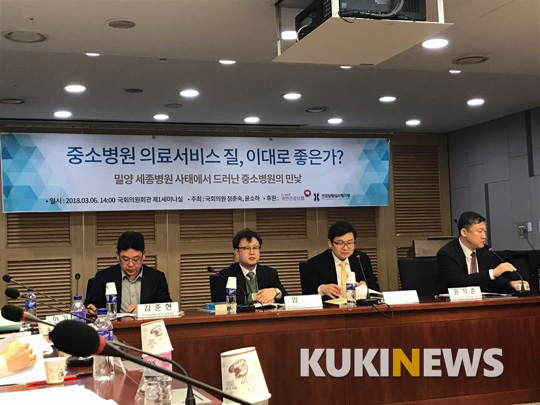 밀양 세종병원 화재 참사를 통해 의료기관의 전반적인 질 관리가 제대로 되지 않고 있는 중소병원 실태가 드러나고 있다. 이에 정부와 의료계, 환자 단체 등은 6일 국회의원회관에서 열린 ‘밀양 세종병원 사태에서 드러난 중소병원의 민낯, 중소병원 의료서비스 질, 이대로 좋은가?’ 토론회에서 병상 수 조정이나 신규 의료기관 증설 규제 등과 같은 의료공급구조 개혁, 사무장 병원 근절과 의료 질 평가를 통한 의료 질 관리 등을 주장했다.