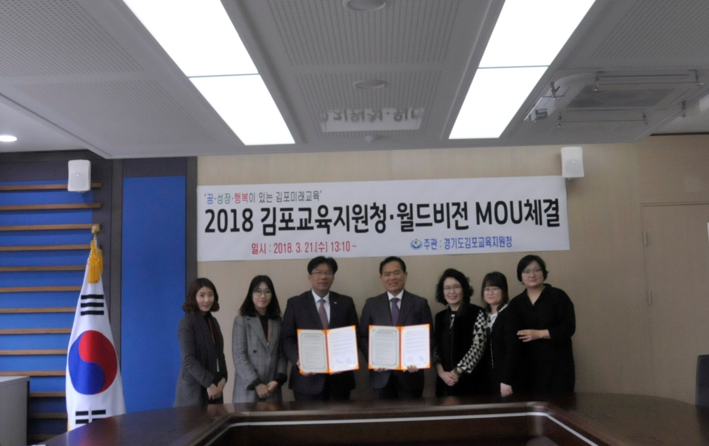 경기도 김포교육지원청은 조식 지원사업 및 세계시민 육성 프로그램 지원을 위해 21일 국제구호개발 NGO인 월드비전과 업무협약을 체결했다(사진).