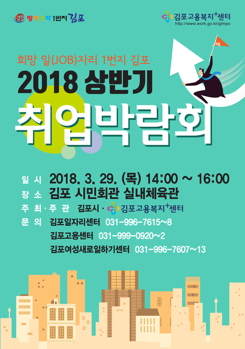 경기도 김포시가 김포고용복지플러스센터와 함께 오는 29일 오후 2시 시민회관 체육관에서 올해 상반기 취업박람회를 개최한다.