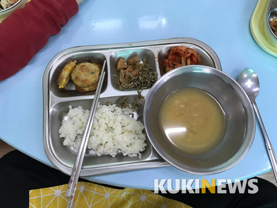 12시는 점심시간이다. 아이들은 손을 씻고 오전 점심 때와 같이 자기 자리에 앉는다. 담임교사는 음식을 나눠 준다. 점심 메뉴는 밥과 된장국, 연근조림, 동그랑땡, 김치, 멸치 등이다. 더 먹고 싶다고 하는 아이들에게는 음식을 더 나눠준다. “선생님 많이 드세요. 저는 많이 먹어요”라고 교사가 말했지만 기자와 교사는 아이들의 식판과 같은 크기의 식판에 남은 음식을 담아 먹었다. 동그랑땡을 더 먹고 싶다고 하는 아이들에겐 기자의 음식을 나눠줬다. 식사 시간이 끝나갔지만 음식에 손도 안 덴 아이들도 있었다. 기자는 혹여 아이가 반찬이 마음에 들지 않는 것은 아닐까 하고 옆에 앉았다. 그러나 먹여주니 음식을 남김없이 먹었다. 옆에서 다른 아이의 밥을 먹여주던 교사는 “아직 혼자 밥을 먹지 못하는 아이들이 있다. 아직은 3월이라 최대한 기다려주고 있다. 불가피할 땐 음식을 먹여준다”고 말했다.