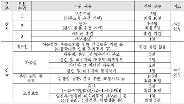 복지부는 지난 3월 질병, 가족상(喪)까지 대체교사를 지원할 수 있도록 사유를 넓히고, 모성 보호를 위해 임신 중인 교사의 병원 진료 및 예방접종을 받을 경우에도 대체교사를 지원받을 수 있도록 하는 방안을 발표했다. 작년까지는 법으로 정해진 보수 교육, 건강 검진, 남자 교사가 예비군 훈련이 있을 때 담임 교사를 대신하여 아이들을 돌보는 대체교사를 파견해 왔었다. 보육교사의 연가, 보수교육 참석과 같은 계획된 일정은 1~2개월 전에 보육통합정보시스템(어린이집 지원시스템)을 통해 신청해야 하지만 질병, 가족상 같은 긴급 상황의 경우 관할 육아종합지원센터에 유선 또는 팩스(Fax)로 수시 신청할 수 있다.