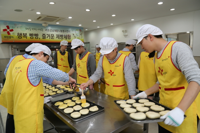 현대글로비스는 임직원 20여명이 최근 대한적십자사 남부봉사관에서 단팥빵과 호박시트케익 등을 직접 만들어 이웃과 나누는 봉사활동을 진행했다.