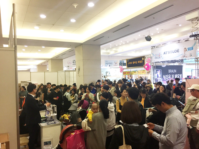 4일 오후 서울 세종대학교 컨벤션센터에서 열린 '제3회 프리미엄 서울 베이비 키즈페어(이하 프리미엄 서베키)'에서 관람객들이 이벤트에 참가하기 위해 행사장으로 모였다.