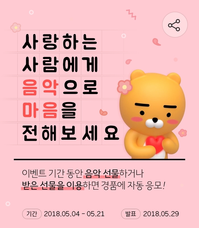 뮤직플랫폼 멜론이 가정의 달을 맞아 카카오멜론을 통한 ‘사랑하는 사람에게 음악으로 마음을 전해보세요’ 이벤트를 진행한다.