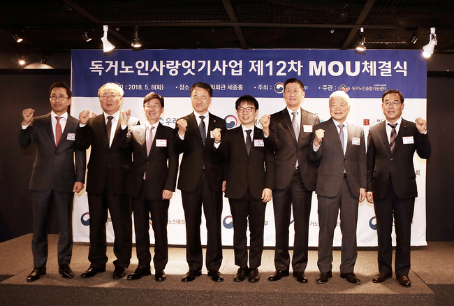 SK하이닉스는 8일 서울시 종로구 세종문화회관에서 SK하이닉스 박성욱 CEO와 보건복지부 박능후 장관, 독거노인종합지원센터 김현미 센터장이 참석한 가운데 보건복지부의 ‘독거노인사랑잇기사업’ 참여 MOU를 체결했다.