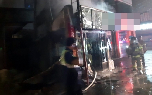 경찰관들의 초기 진화에 불은 상가건물 간판과 내부 7㎡만 태우고 꺼졌다.