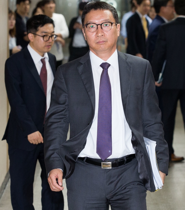 김학수 감리위원장(증권선물위원회 상임위원)이 17일 오후 삼성바이오로직스 분식 회계 여부를 심의하기 위해 정부서울청사 금융위원회 대회의실로 입장하고 있다.