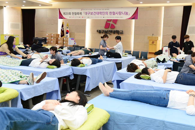 이날 대구보건대는 대한적십자사 대구·경북혈액원의 도움을 받아 본관 1층 로비와 3층 헌혈 침대 50여 개를 배치했다.