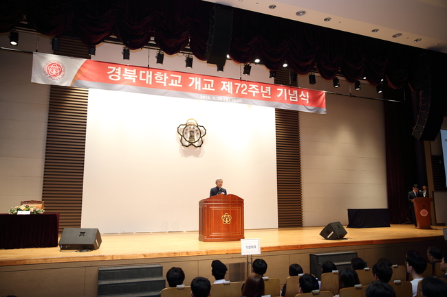 김상동 경북대 총장은 개교 71주년 기념사를 통해 “경북대학교가 ‘진리가 피어나는 72번째 봄’을 맞이했다. 경북대학교의 다가오는 새로운 72년이 대한민국의 자랑이 될 수 있도록 구성원 모두의 힘이 필요하다”며 “무궁무진한 우리의 잠재력과 역량을 깨우고 실천하는 노력을 통해 세계와 국가의 새로운 미래를 우리 경북대학교가 앞서 만들어 가야 한다”고 소회를 밝혔다.