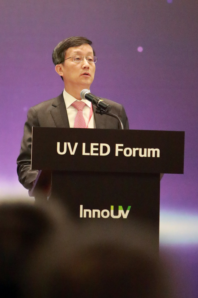 LG이노텍이 UV LED 기술 동향을 공유하는 ‘UV LED 포럼’을 29일 중국 광둥성 선전시 ‘JW매리어트호텔 선전 바오안’에서 개최했다. UV LED는 자외선을 방출하는 첨단 반도체 광원이다. 파장에 따라 세균·바이러스를 없애고, 특수 물질과 화학 반응하는 특성이 있어 물·공기·표면 살균, 의료·바이오, 경화·노광 장치 등에 사용된다.