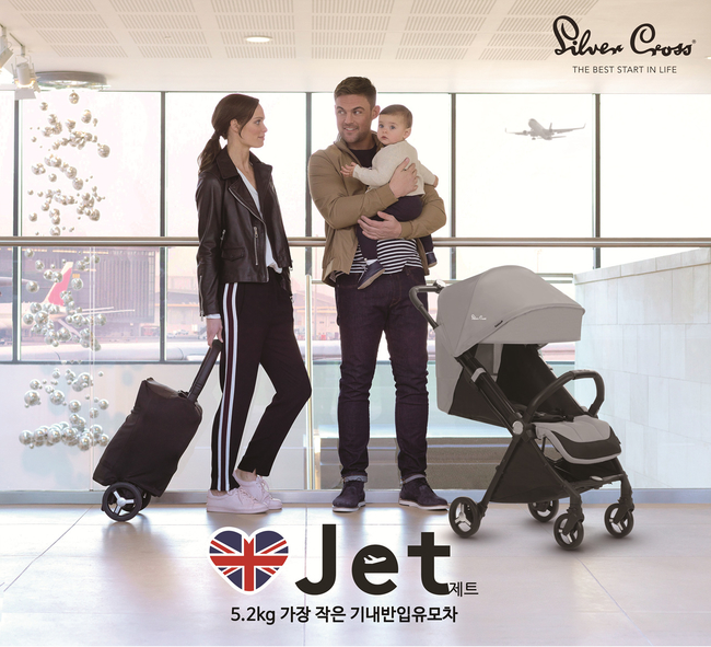 실버크로스 제트(Jet)는 5.2kg의 가벼운 무게로 휴가철 이동거리가 긴 해외여행뿐 아니라 국내여행을 준비하는 가족들에게 휴대가 용이하고 편의성이 높다. 또한 신생아용 카시트 설치도 가능해 신생아부터 4세까지 하나의 유모차로 사용 가능하다.