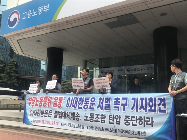 마지막으로 "CJ대한통운과 위탁대리점들은 시대적 흐름을 인정하고 즉각 교섭에 나서고 노동부는 엄정한 잣대로 CJ대한통운의 위법행위 처벌하라”고 말했다.