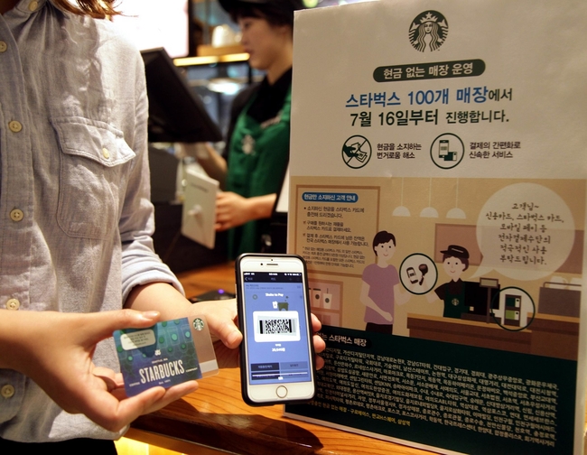 스타벅스커피 코리아는 현재 운영 중인 3곳의 현금 없는 매장을 전국 100개 매장에 추가 확대한다.