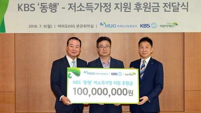 주택도시보증공사(HUG)는 ‘KBS 동행’ 출연자들을 위한 1억원 후원금 전달식을 가졌다고 9일 밝혔다.