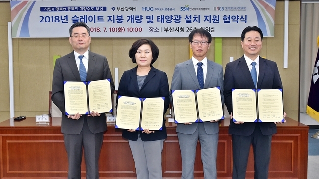 주택도시보증공사(HUG)는 10일 부산시청에서 부산시, 한국사회복지협의회, 부산도시재생지원센터와 ‘노후 슬레이트 지붕개량 및 태양광 설치 지원에 관한 협약’을 맺고 사업비 3억원을 후원했다고 밝혔다.