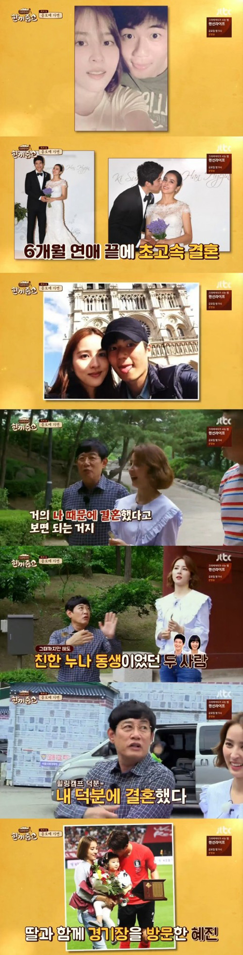 이 말에 강호동은 “혹시 그때 사귀고 있었던 것 아니냐”고 물었고 한혜진은 “그때는 사귀는 사이가 아니었다. 그 이후에 (기성용의) 누나가 결혼을 했을 때 귀국을 했다. 그때 만났다”고 밝혔다.