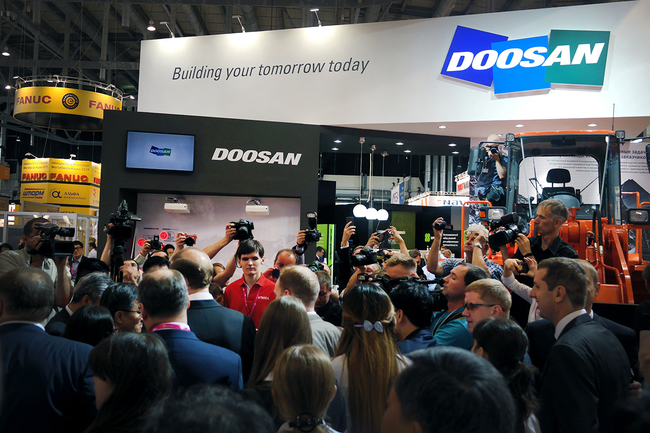 두산인프라코어는 이번 박람회에 휠로더 SD300 모델을 전시했다. 이 제품은 두산인프라코어가 러시아에서 판매하는 휠로더 중 절반 이상을 차지하는 주력 수출 기종이다. 두산인프라코어는 중대형 건설기계, 선박, 상용차, 발전기 등에 사용되는 DL08 엔진 모델도 전시했다.
