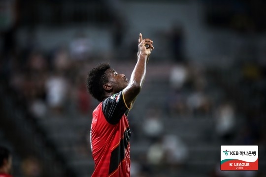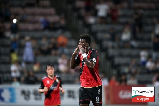 경남 FC 공격수 말컹은 이날 2골 1도움을 올리며 K리그1(클래식) 득점 공동 선두에 올랐다.