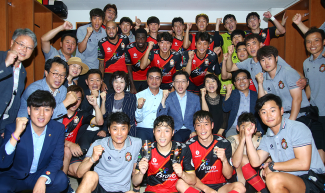 김 지사는 시축과 함께 선수단을 격려했고 끝까지 경기를 관람하며 경기장을 찾은 도민들과 함께 승리를 축하했다.