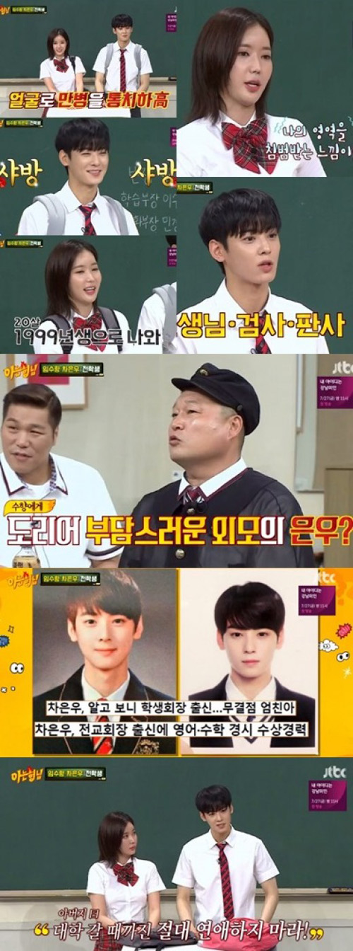 21일 방송된 JTBC 주말 예능 프로그램 ‘아는형님’에 임수향, 차은우가 전학생으로 등장했다.