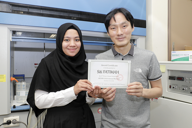 영남대학교 대학원 신소재공학과에 재학 중인 인도네시아 출신 시티파티마(Siti Fatimah·28·석박사통합과정 6기) 씨가 재료분야 국제학술대회인 ‘2018 APSMR(Asia Pacific Society for Materials Research) 연례회의’에서 우수논문발표상을 수상했다.