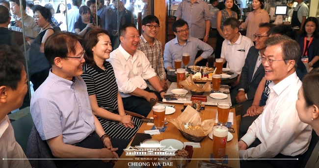 청와대가 최근 불거진 문재인 대통령의 호프집 연출 논란에 대해 “사실과 다르다”고 해명했다.
