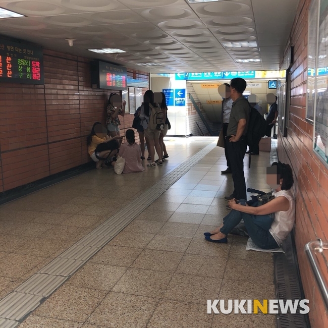 같은 날 경의중앙선 이촌역은 오후 12시30분 기준, 39도를 기록했다. 승강장 내 그늘은 찾기 힘들었다. 승객들은 내리쬐는 햇볕을 피하기 위해 지하 대합실에 모였다.