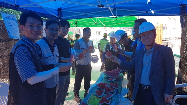 이밖에 지난 3일 부산 통합청사 건설현장을 방문해 수박을 전달하기도 했다. 캠코는 현장에서 근로자 건강보호 가이드라인이 잘 지켜지고 있는지 확인하고 현장으로부터 근로 여건, 불편 사항 등 의견을 듣기도 했다.