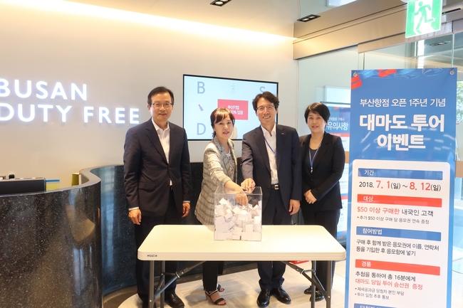 부산면세점은 13일 오후, 지난달부터 12일까지 진행된 ‘부산항점 오픈 1주년 기념, 대마도투어 이벤트’ 당첨자 추첨식을 용두산점에서 가졌다.