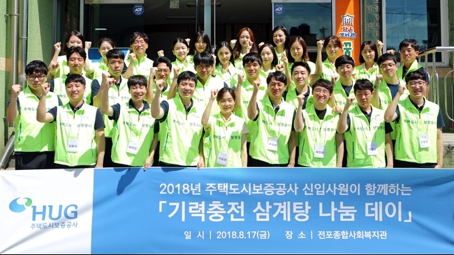주택도시보증공사(HUG) 신입사원 30명은 17일 부산 소재 전포종합사회복지관에서 지역 어르신들께 삼계탕을 대접하는 나눔 봉사활동을 진행했다.