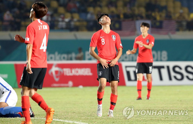 한국은 17일 오후 9시(한국시간) 인도네시아 자와바랏주 반둥의 시 잘락 하루팟 스타디움에서 열린 2018 자카르타-팔렘방 아시안게임 남자 축구 조별리그 E조 2차전에서 말레이시아에 1-2로 패했다.