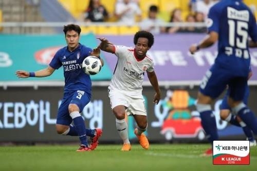 태풍 '솔릭'의 영향으로 지난 22일 취소됐던 프로축구 K리그1(1부리그) 제주-수원 경기가 A매치(국가대표팀간 경기) 기간인 다음달 8일 열린다.