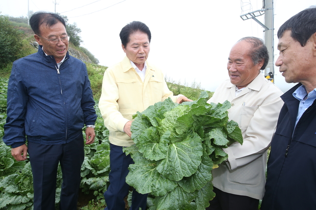 또한 폭염과 가뭄에 이어 최근 태풍과 호우 등 이상기후에 따른 피해를 최소화 하기 위해 출하전까지 세심한 포전관리를 당부했다. 배추·무 출하를 위해 노력하고 있는 직원들에 대한 격려도 아끼지 않았다.