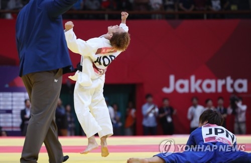 정보경은 29일 인도네시아 자카르타 컨벤션센터에서 열린 2018 자카르타·팔렘방 아시안게임 유도 여자 48㎏급 결승에서 일본 곤도 아미(세계랭킹 7위)를 상대로 연장승부 끝에 업어치기로 절반 판정을 받으며 금메달을 따냈다.