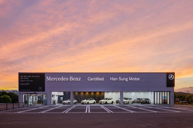 강원도 최초의 벤츠 인증 중고차 전시장인 원주 인증 중고차 전시장은 연면적 859.42㎡, 지상 1층 규모로 실내외 차량 40여대를 전시할 수 있다.