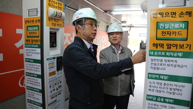 이번 특별점검에서 박상우 LH 사장은 건설근로자의 체계적인 인력관리를 위해 도입한 전자카드 근무관리시스템을 확인하고 건설근로자 출역관리 실태, 임금체불 여부 및 현장근로자들의 애로사항을 청취했다.