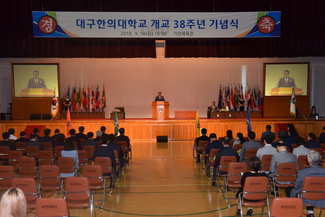 대구한의대학교가 14일 오전 기린체육관에서 교직원, 학생, 동문, 학부모 등 1000여 명이 참석한 가운데 개교 38주년 기념식을 가졌다.