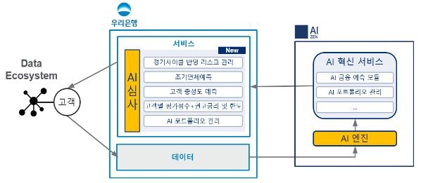 예를 들어 우리은행에서 대출업무 위탁을 받은 에이젠글로벌의 경우 테스트에 동의한 고객을 대상으로 AI 예측모형을 통해 개인신용대출 신청 건에 대한 평가점수와 대출금리를 산정하게 된다. 실제 대출 역시 이를 기반으로 취급된다.