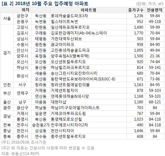 추석연휴가 끝나면 전국에서 총 3만4581가구가 입주할 예정이다. 그중 경기권에서만 1만3188가구가 입주 예정이며, 이는 전체의 40%에 해당한다.