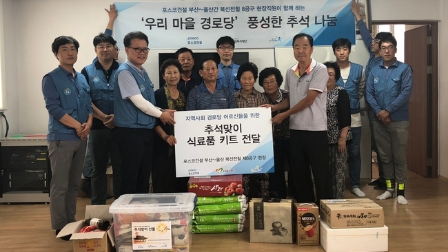 포스코건설은 인천, 포항, 광양, 부산 등에서 봉사를 진행했다. 소외계층과 독거노인들에게는 사랑의 꾸러미를 전달했다. 사랑의 꾸러미에는 라면, 김, 칫솔, 치약 등 식재료와 생활용품이 담겨 있다. 또한 모자가정에게는 출산 및 육아용품을 전달했다.