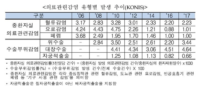 ‘병원감염’, 공식 용어로 ‘의료관련감염’ 얘기다. 국회 보건복지위원회 소속 더불어민주당 신동근 의원실 관계자 A씨는 “적어도 병을 고치기 위해 가는 병원에서 최소한 병을 얻고 생명을 위협받는 일은 없어야 하는 것 아니겠냐”면서 “2006년 질본이 지원해 시작한 ‘전국의료관련감염 감시체계(KONIS, 코니스)’가 이상하다”고 말했다.