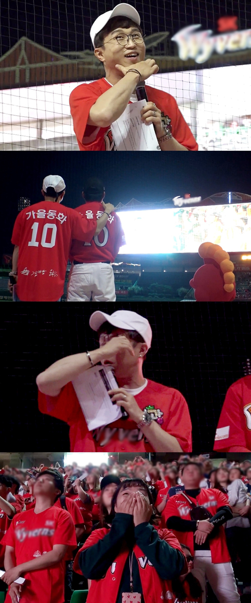 특히 박성광은 전광판 속 영상을 보고 자신도 모르게 울컥하며 눈물 보였다. 그가 갑작스럽게 터진 눈물을 들키지 않기 위해 손으로 눈물을 훔치는 모습은 벌써부터 보는 이들의 마음을 뭉클하게 했다.