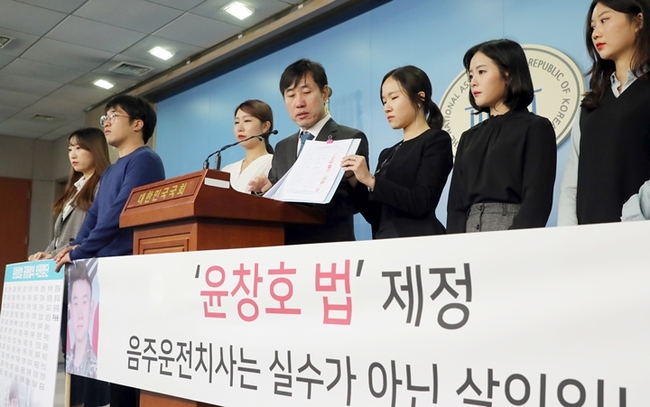 이들 법안이 윤창호법으로 불리는 이유는 최근 부산 해운대에서 만취한 운전자가 몰던 차에 치여 사실상 뇌사상태에 빠진 윤창호(22·카투사)씨 사건을 계기로 추진됐기 때문이다. 윤 씨는 제대를 얼마 남겨두지 않은 상황이었다. 윤 씨와 관련된 국민청원은 34만명을 넘겼다.